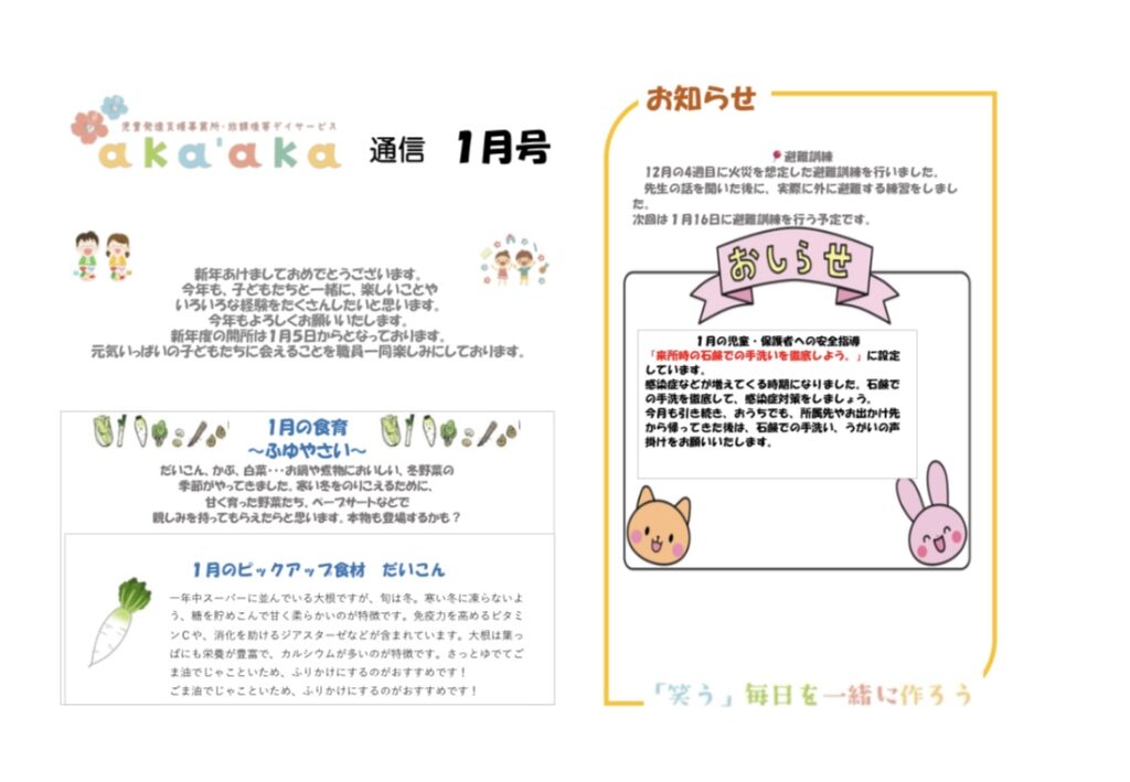 1月のaka’aka通信をお届けします📮