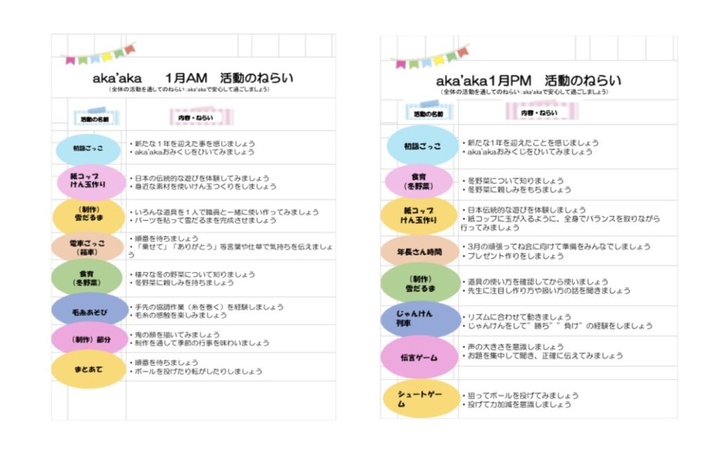 1月は初詣ごっこ等季節を味わう活動を