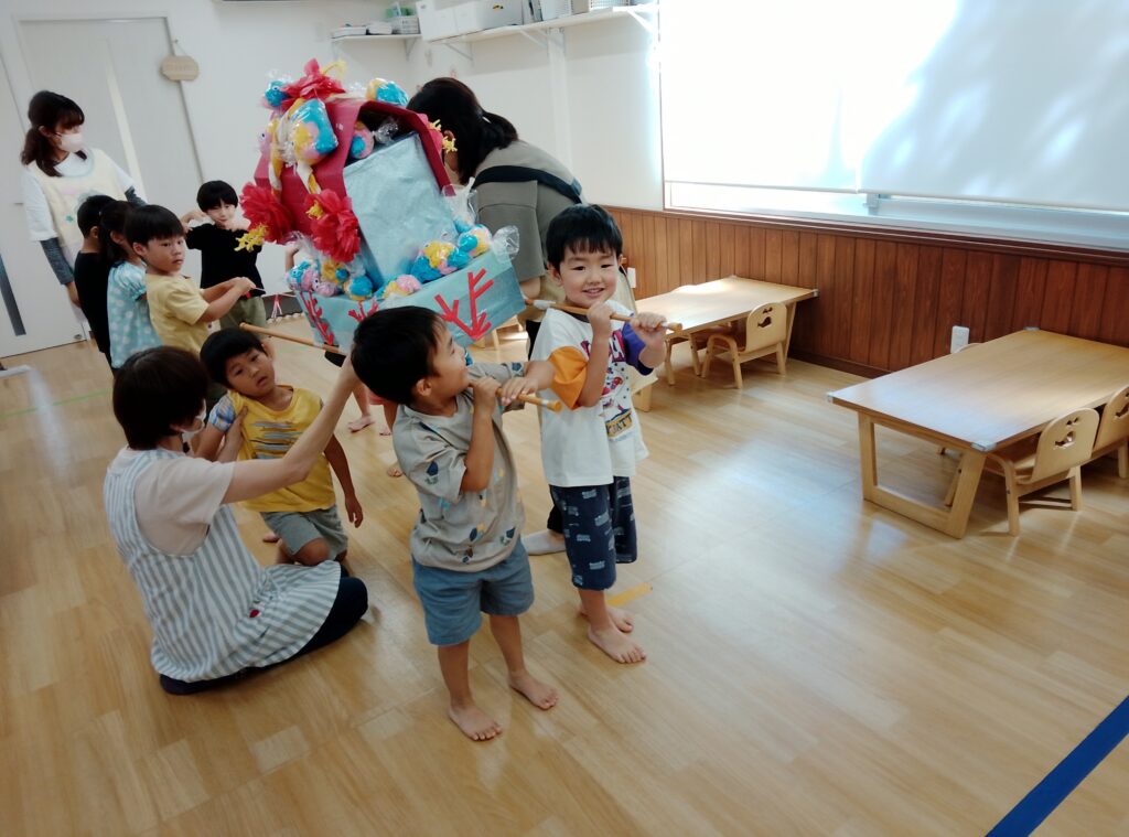 みんなで協力してaka’akaお神輿を運び