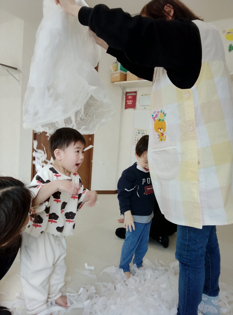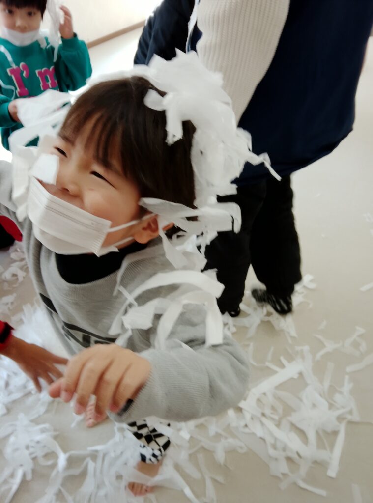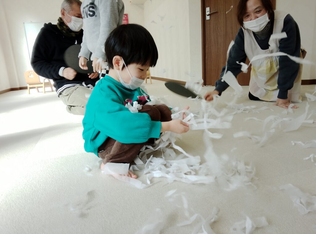 楽しくお花紙をちぎり