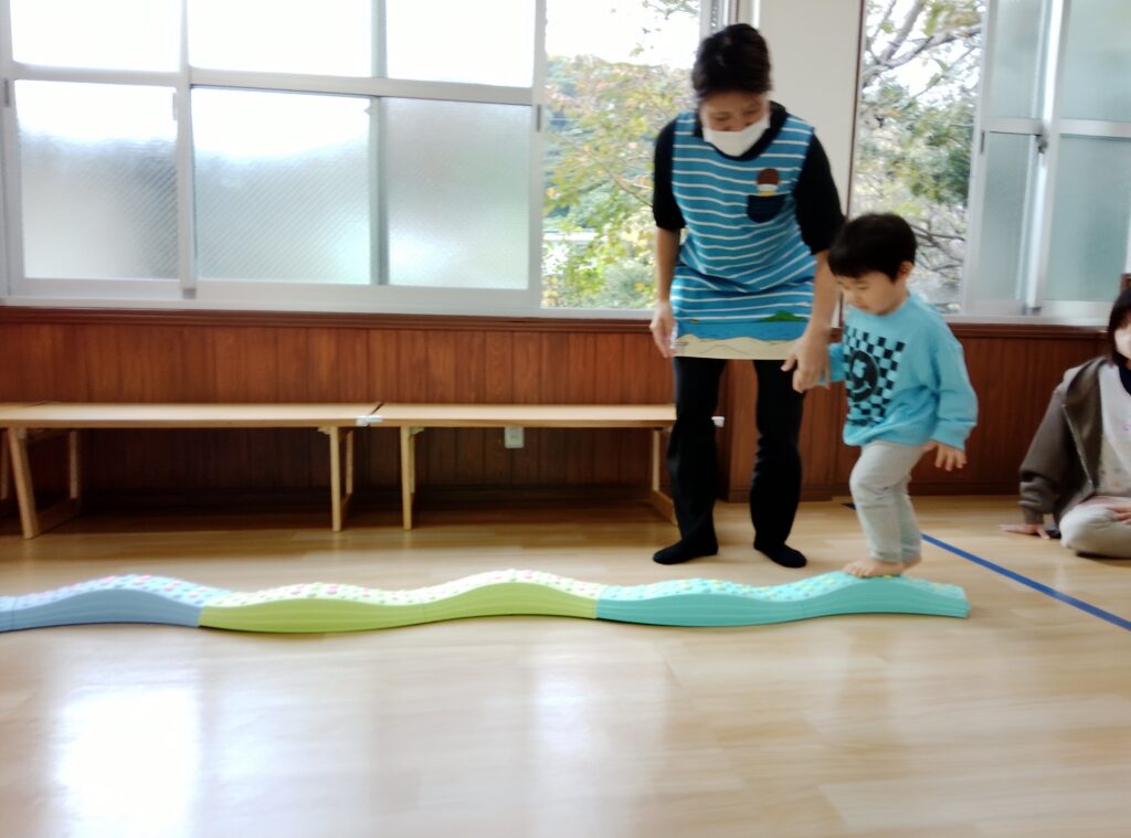 平均台やトンネルくぐり、輪っかジャンプで