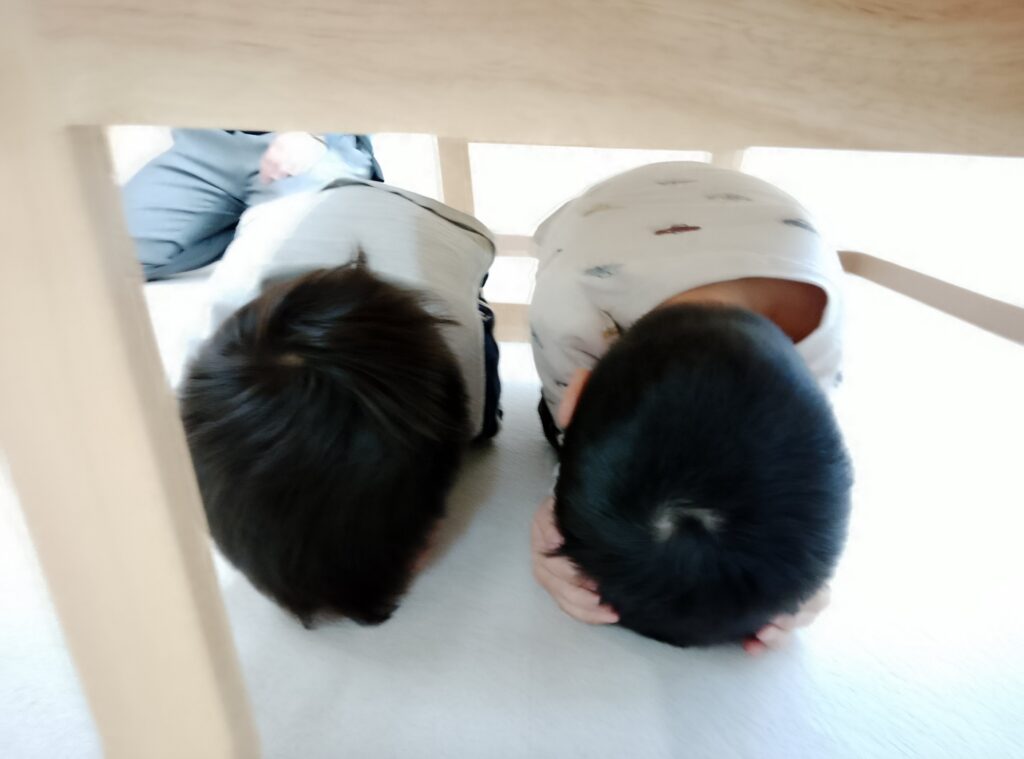 机の下に入り、頭や身体を守ることができました🙆‍♀️