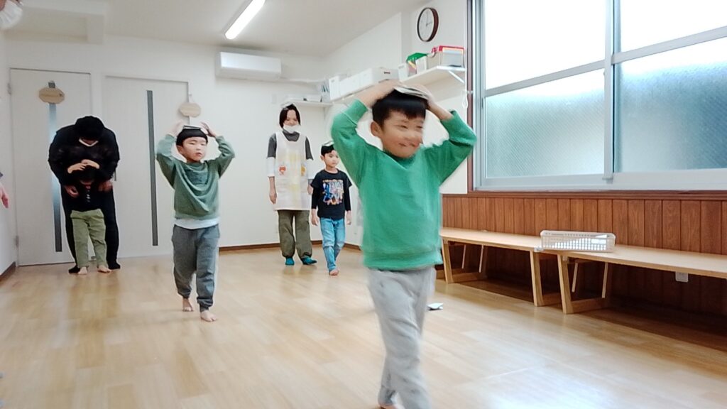 頭の上に乗せて落ちないようにバランスをとったり