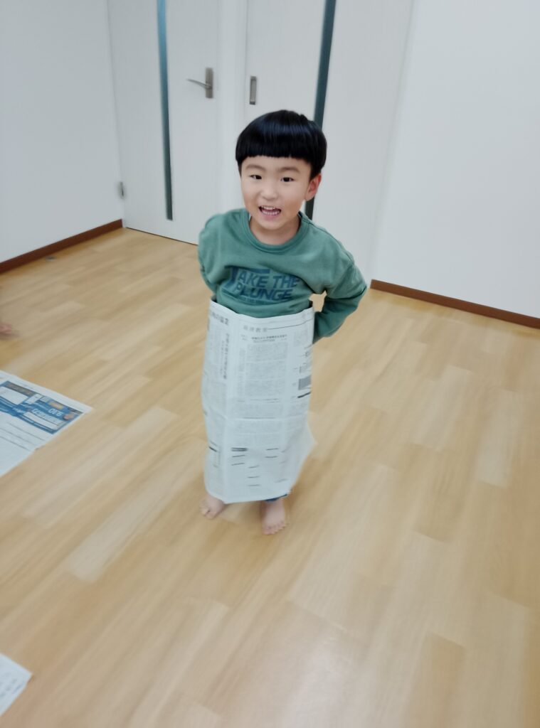新聞紙一枚で色々な遊びができることを体験しました✨